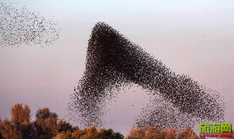 旅游官 以色列灰椋鸟空中群舞 场面壮观 attach_img