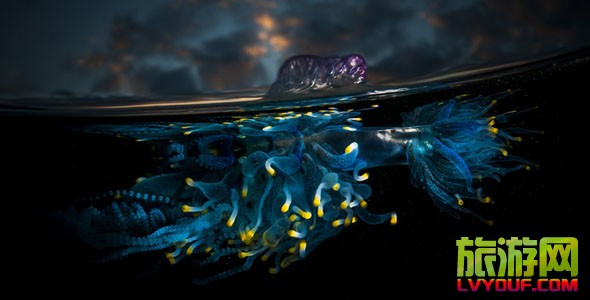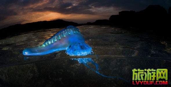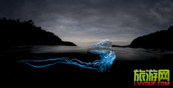 旅游官 摄影师拍摄僧帽水母 散发神秘蓝色荧光 attach_img