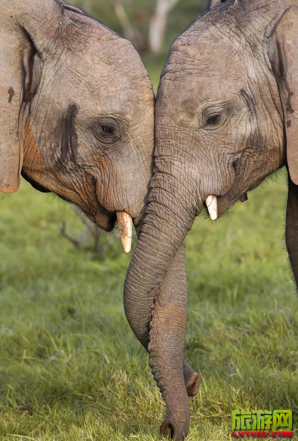 从某个角度看起来,两头非洲象似乎在“亲吻”对方   据《每日邮报》报道,37岁摄影师雅克·马蒂桑日前在南非卡里埃加野生动物保护区(Kariega Game Reserve)内拍摄到温馨一幕:两头非洲大象鼻勾 ...