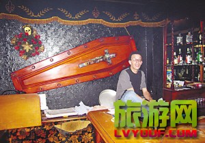 墙上挂着棺材盖板 比利时布鲁塞尔有家30多年的棺材酒吧,生意一直非常红火,目前顾客已遍及欧洲各国。 酒吧走廊是一条长约10米的窄窄通道,通道的两边画着阴森墓园气氛的壁画。通道尽头是 ...