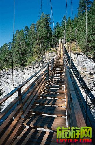 6、悬梯桥,瑞士   这座位于瑞士Traversinertobel的悬梯桥由瑞士籍建筑师Jurg Conzett设计。由于原址的索桥损毁,Jurg Conzett和他的助理Rolf Bachofner在2座山体上找到2处高低不一的安全固定 ...