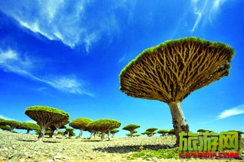 8、也门,索科特拉岛   位于亚丁湾入口的索科特拉岛也许是世界上最奇异的地方了。这里三分之一的植物仅在这里才可以看到,而最古怪的莫过于龙血树了,这种树看起来像一棵大菠菜,树脂是暗红色 ...