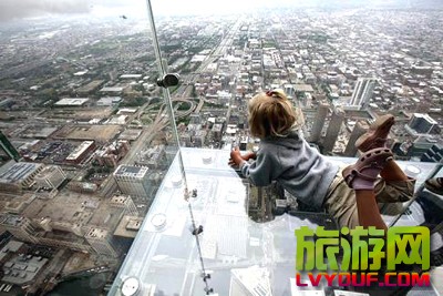 日前,美国芝加哥的西尔斯大厦在第103层瞭望台增设的玻璃阳台对媒体开放。这些玻璃阳台建在大厦西侧,从瞭望台向外延伸约1.2米。阳台的玻璃地板厚达12.7厘米,可承重约5吨。