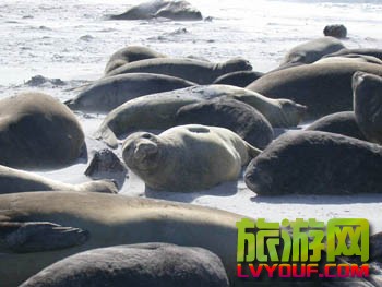 海滩上的象海豹群   四月春暖花开之际,象海豹成群结队来到美国加州海滨,像度假一般在沙滩睡大觉,吸引许多民众前来观赏。   象海豹产在美洲南端,它兼有海象和海豹的双重特点,是鳍脚目动物中的兽王 ...