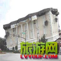 奇迹工作楼   位于美国佛罗里达州,远远望去,整个欧式建筑看上去像是底朝天倒了个个儿———屋顶在下,地基在上,歪倒在另一栋低矮建筑物上,门前几棵棕榄树是倒着长的,连大门的招牌字Wonder Works( ...
