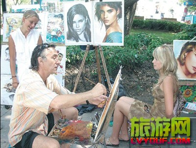 俄罗斯风格的美术作品十分著名,人物肖像更是一大特色。在乌克兰的街头巷尾,经常可以看到一些画家在为来往的路人画上一张惟妙惟肖的画像,其精湛的画技令人叫绝。   图为乌克兰旅游胜地雅尔塔著名的肖 ...