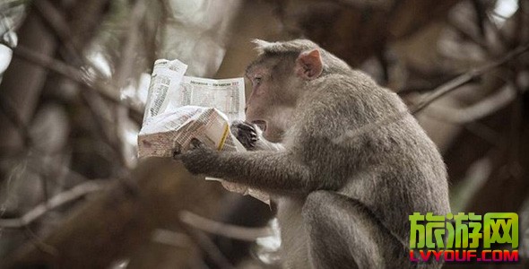 旅游官 印度猕猴看报纸 "研读"股市行情表情震惊 attach_img