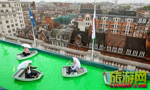 旅游官 英国塞尔福里奇百货屋顶建人工湖 游客惬意划船俯瞰伦敦 attach_img