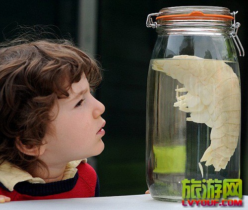 旅游官 英国阿伯丁大学展出巨型明虾 是一般虾长的10倍 attach_img