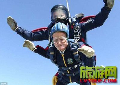 旅游官 英国98岁老人高空跳伞筹善款 attach_img